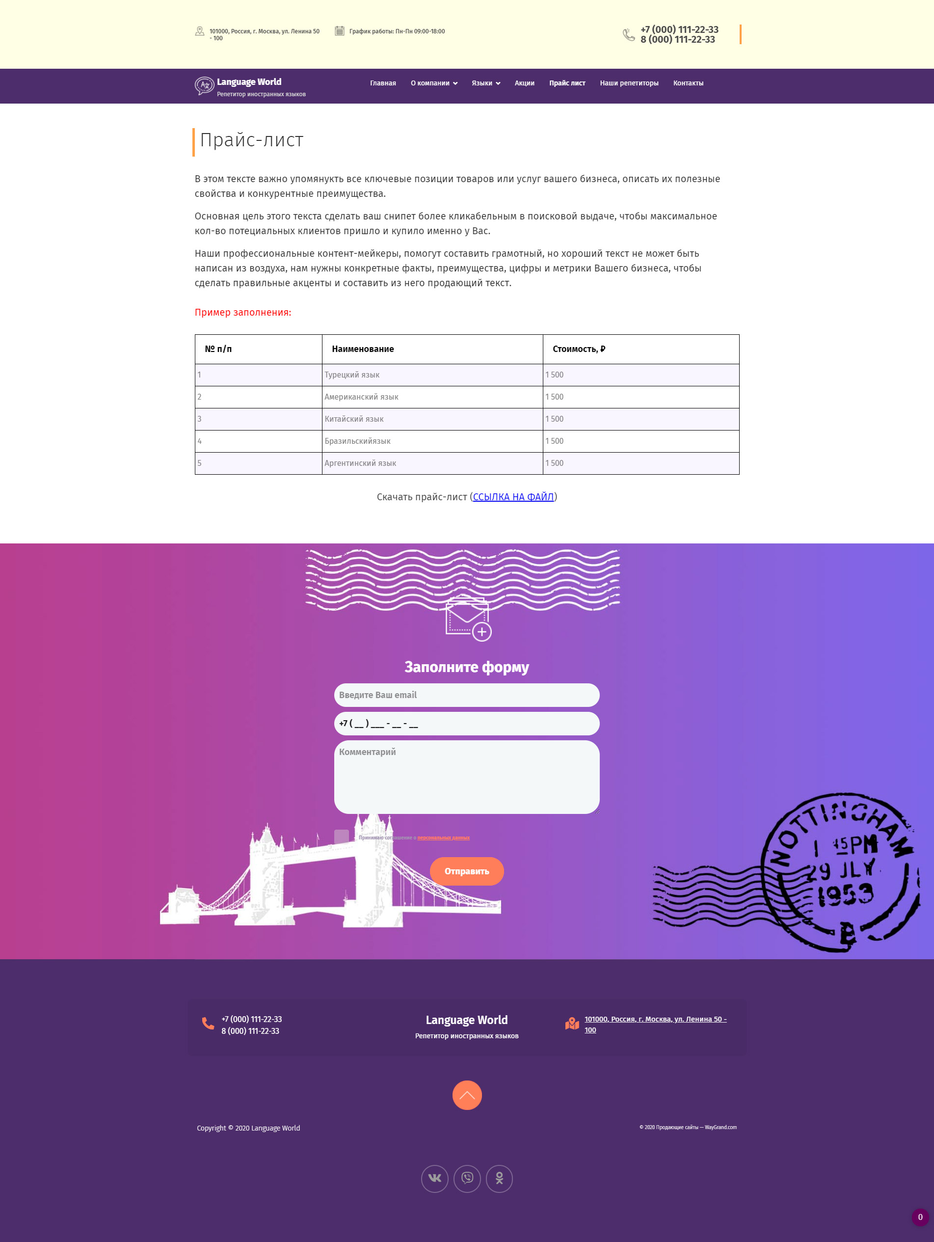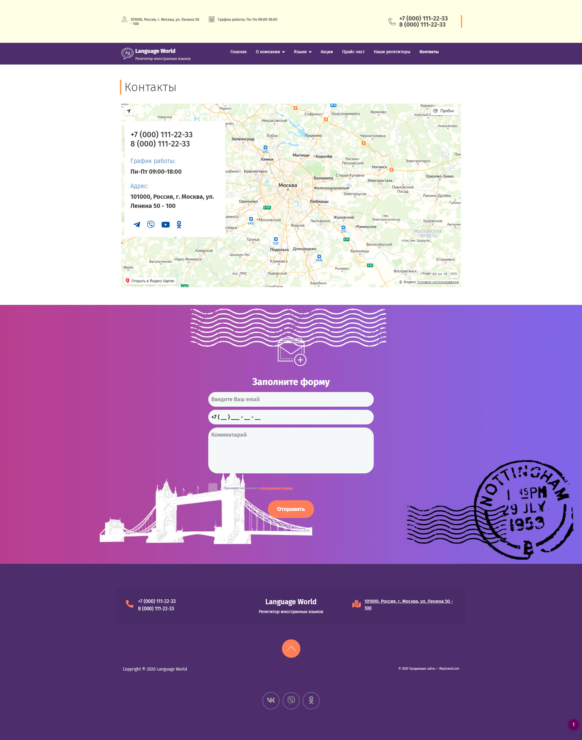 Закажите готовый продающий сайт визитка #1448301 в Уссурийске за 5-7 дня «под ключ»: свёрстан, отрисован и готов к рекламе. Тематика шаблона «Курсы иностранных языков».
