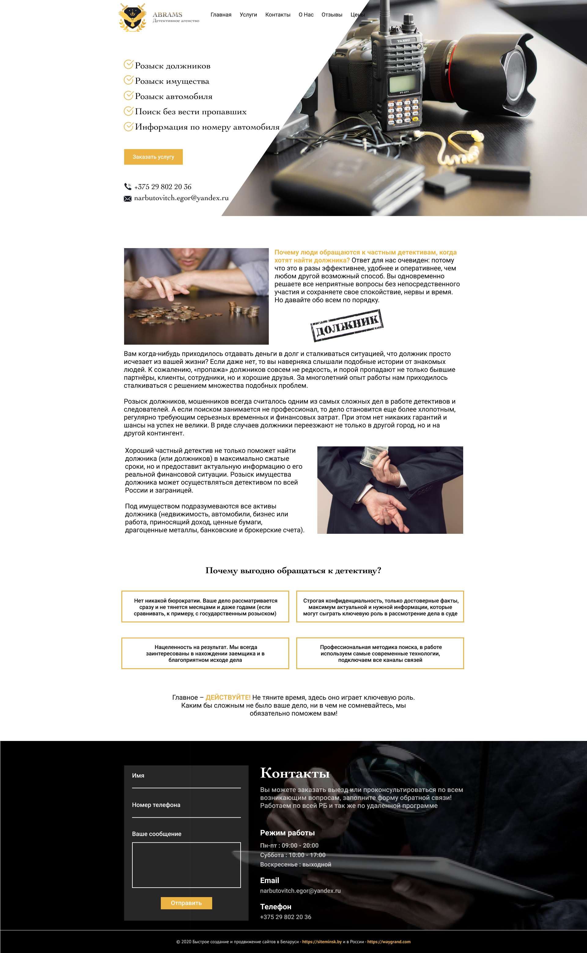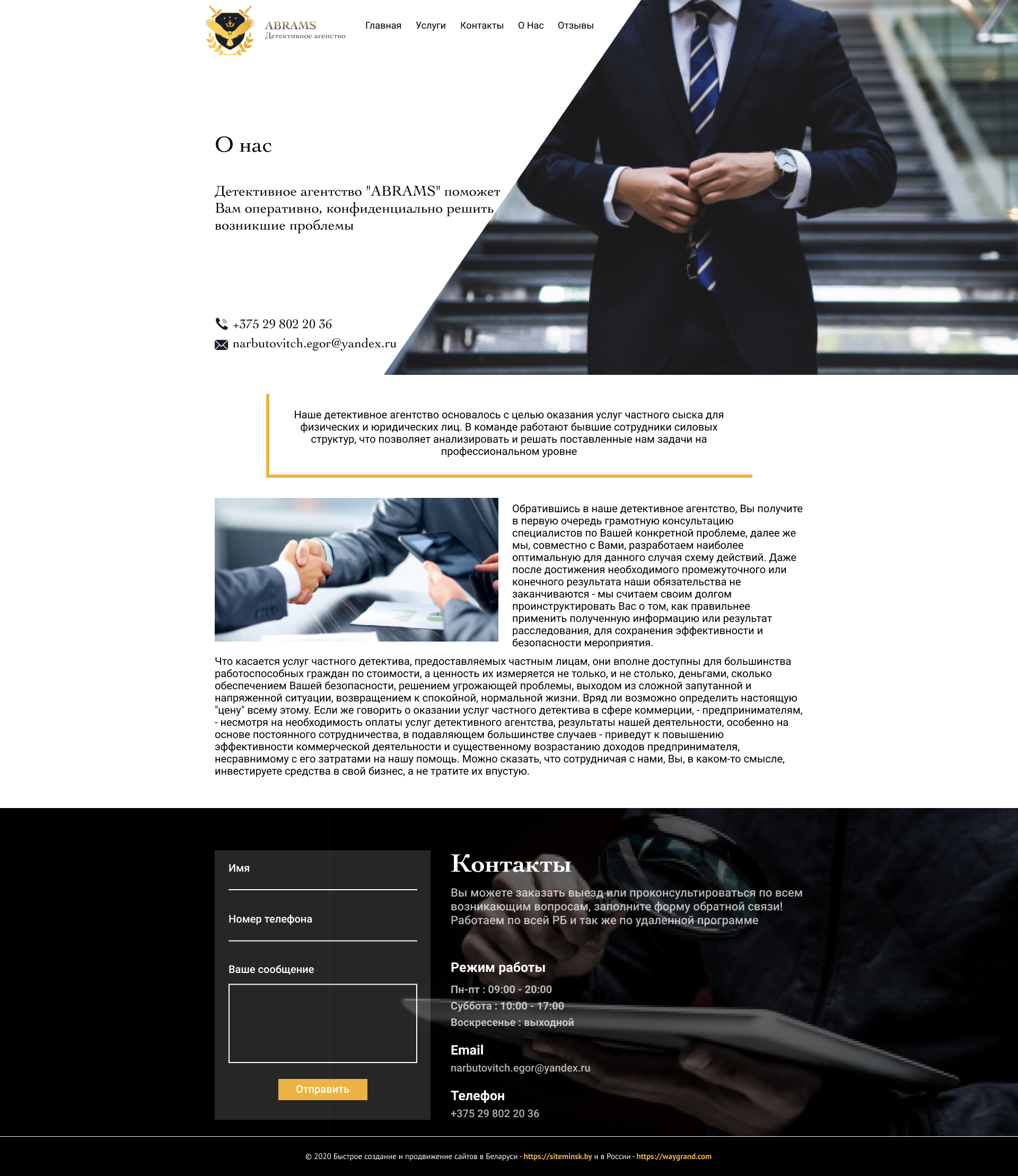 Закажите готовый продающий сайт визитка #239 в Уссурийске за 5-7 дня «под ключ»: свёрстан, отрисован и готов к рекламе. Тематика шаблона «Частное детективное агентство».